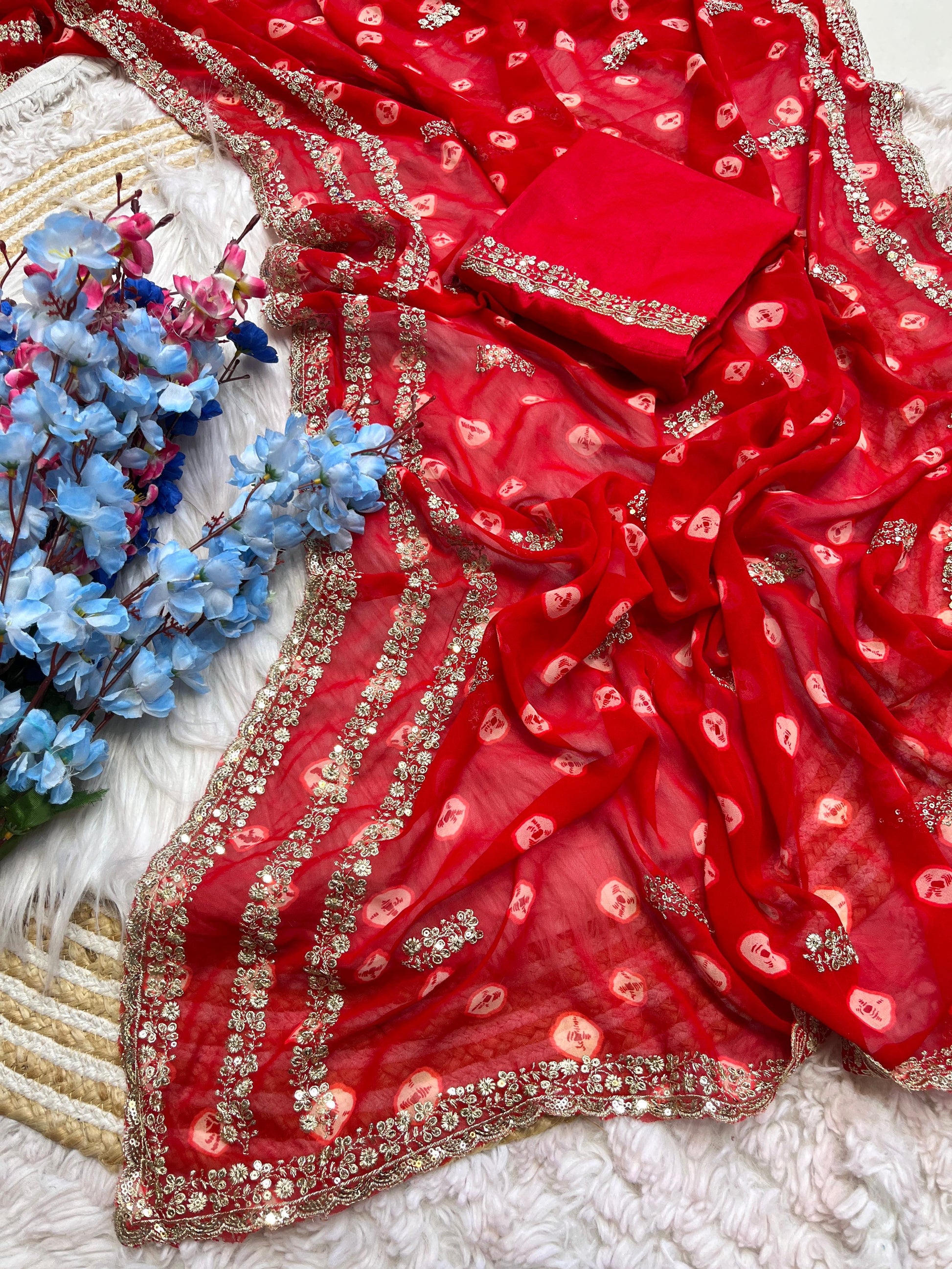 Georgette Authentic Bandhej Gujarati Print Saree with Unstitched Blouse