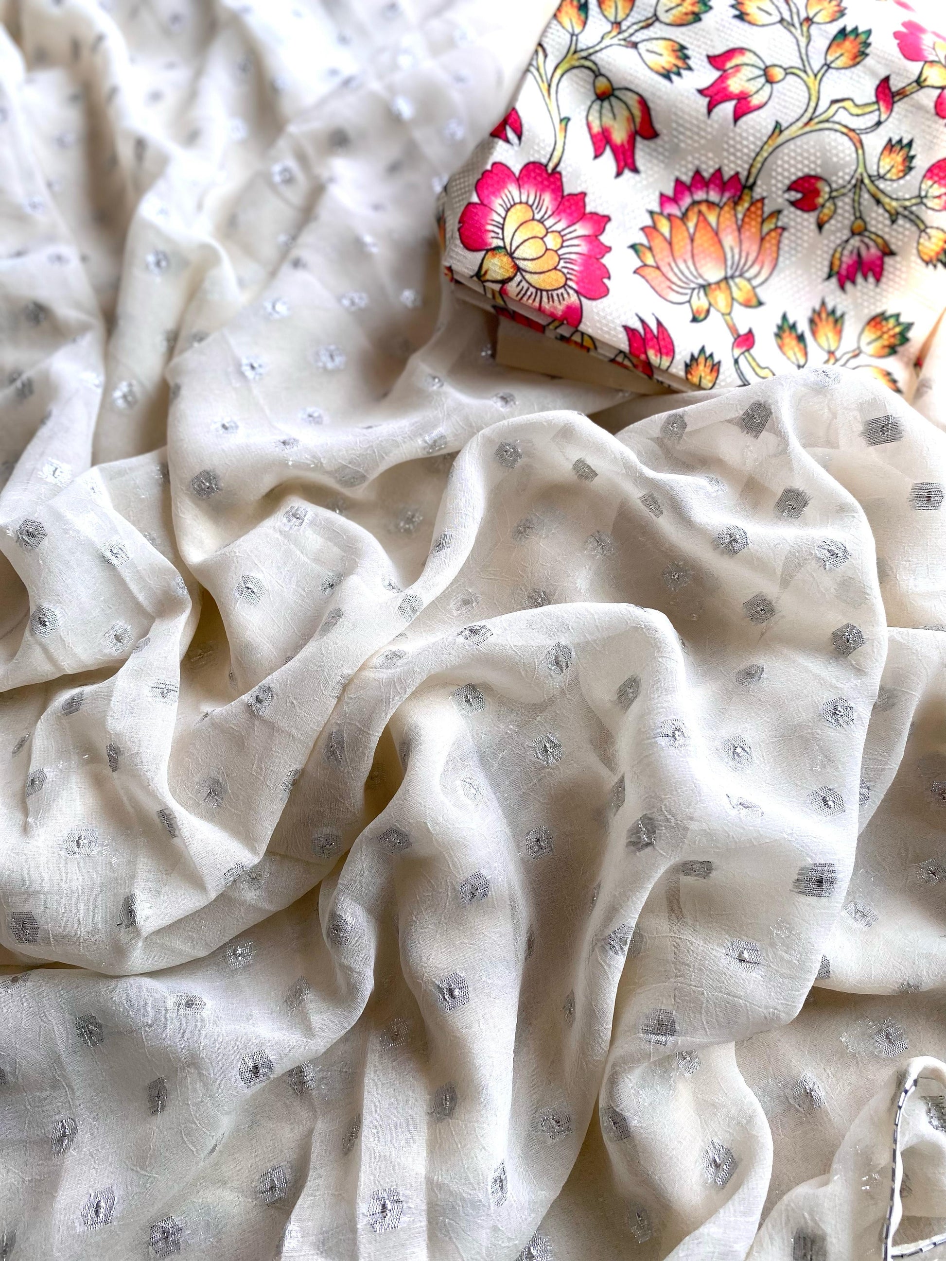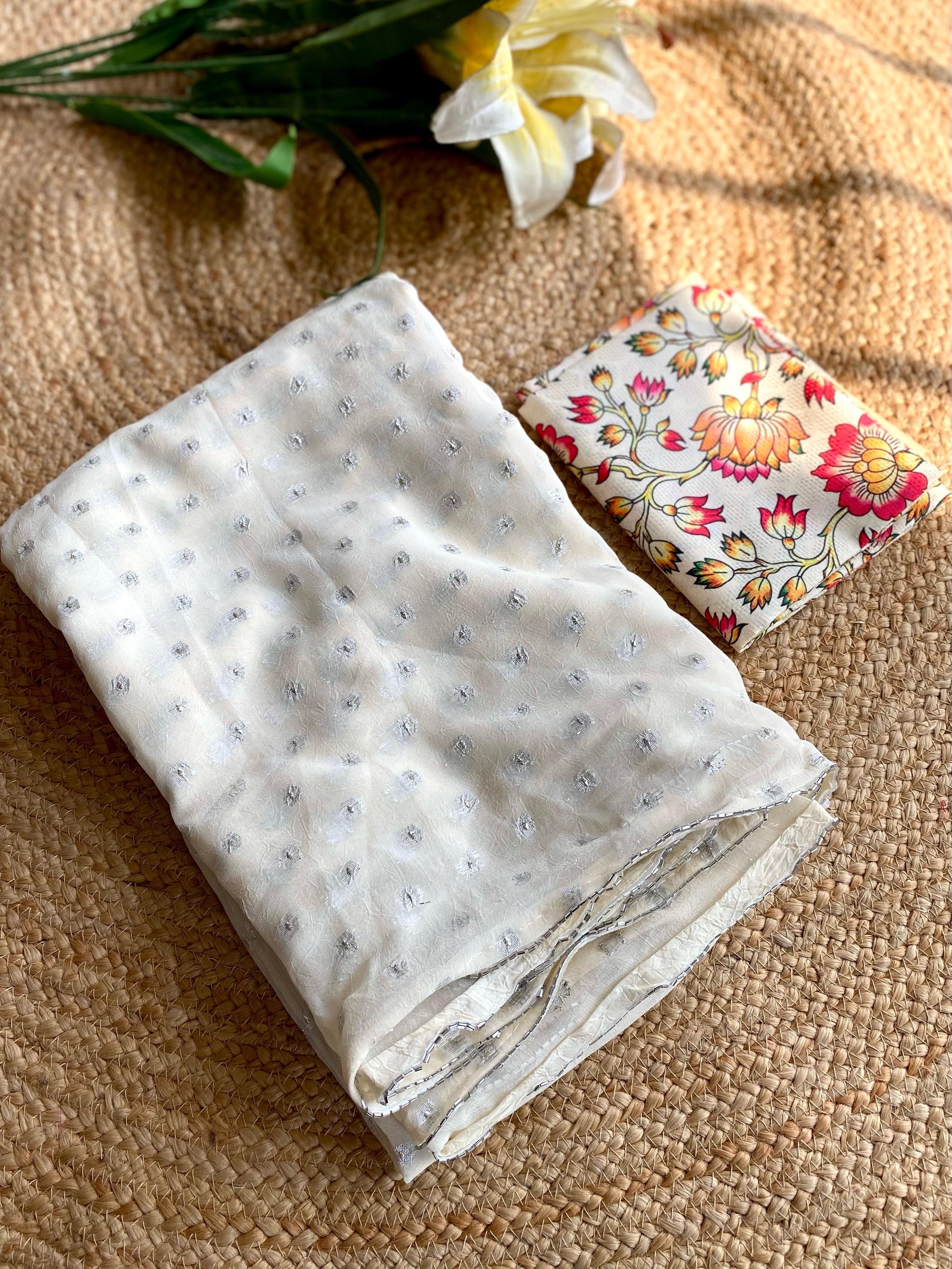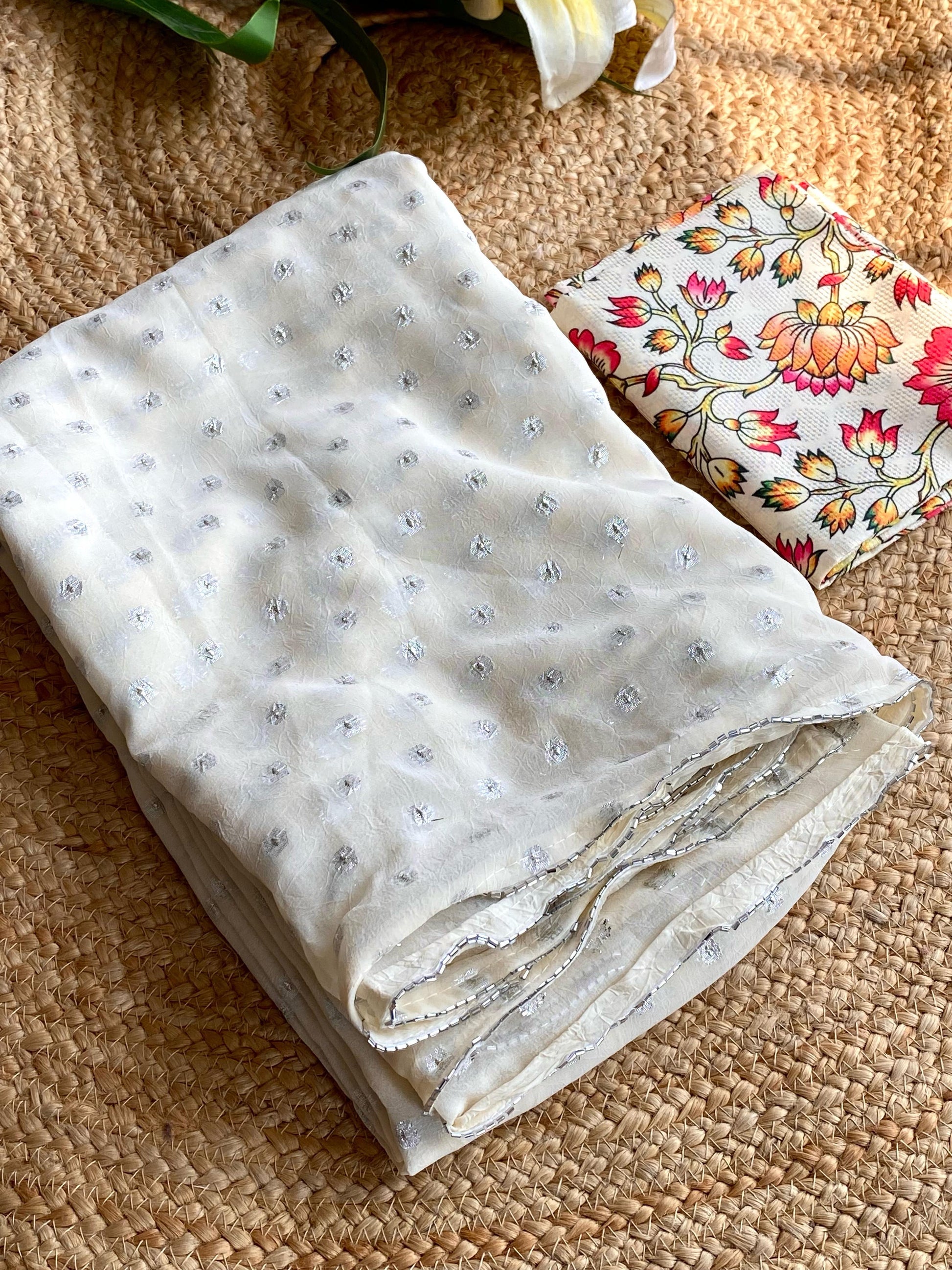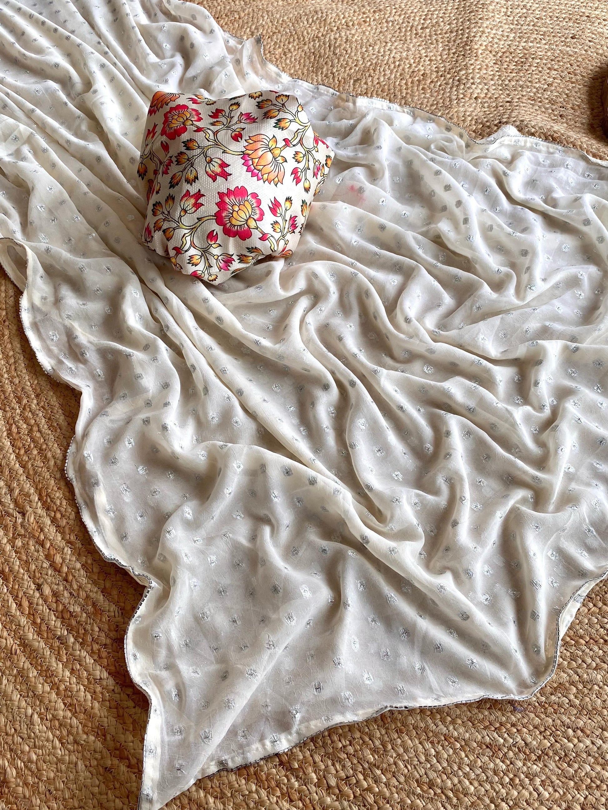 Georgette Saree with Silver Print & Unstitched Blouse